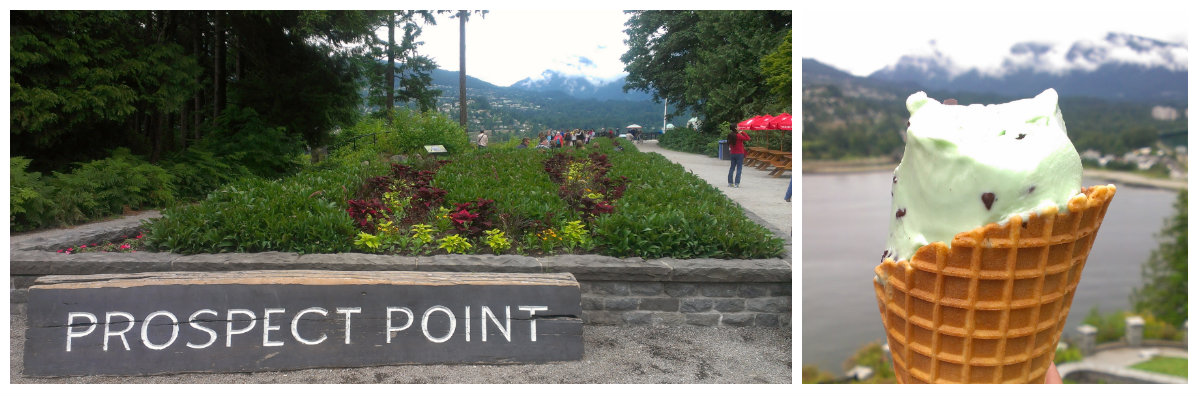 All parking within the park is metered but the meters take credit cards (for those of us who rarely have cash on hand). We parked along the road near Prospect Point. First on the agenda was ice cream! Yum!! We were directed to a path that lead down to the seawall and came out under the Lions Gate Bridge.