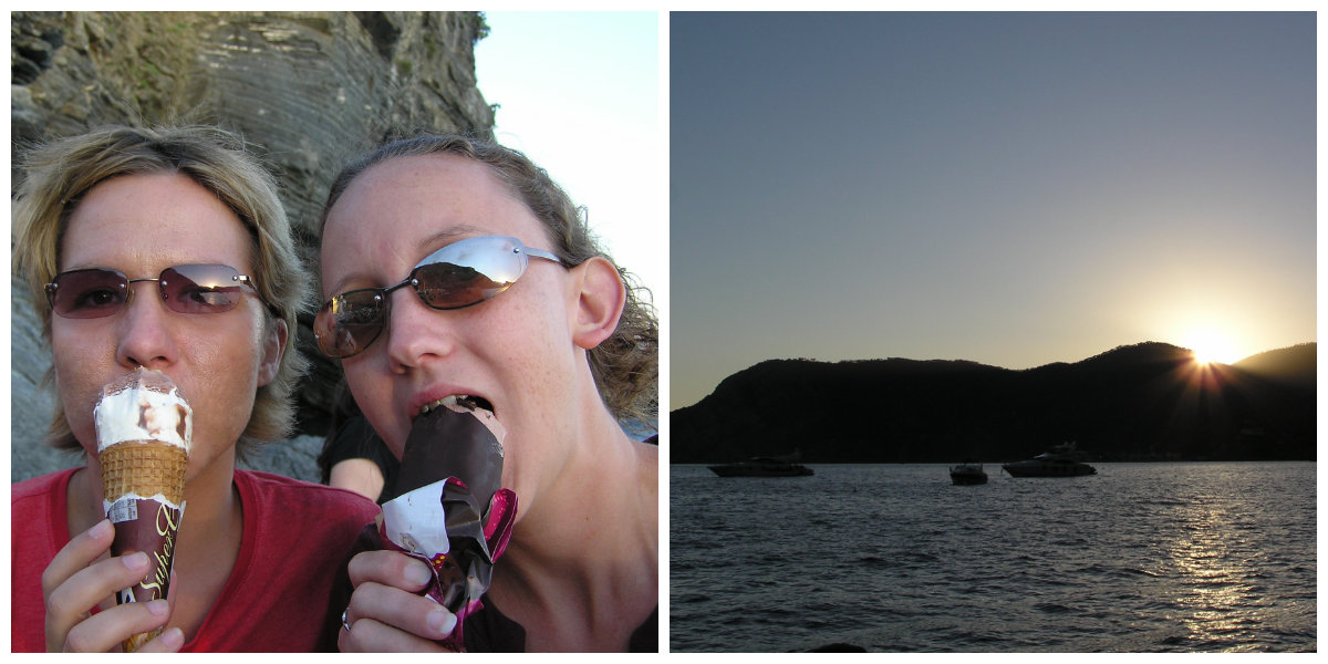 We took our ice cream treats to the rocks by the water and watched the sunset. Ahhh….so nice! On our walk back through town to our room we noticed that all of the gelaterias were open again! Candid camera? Perhaps…