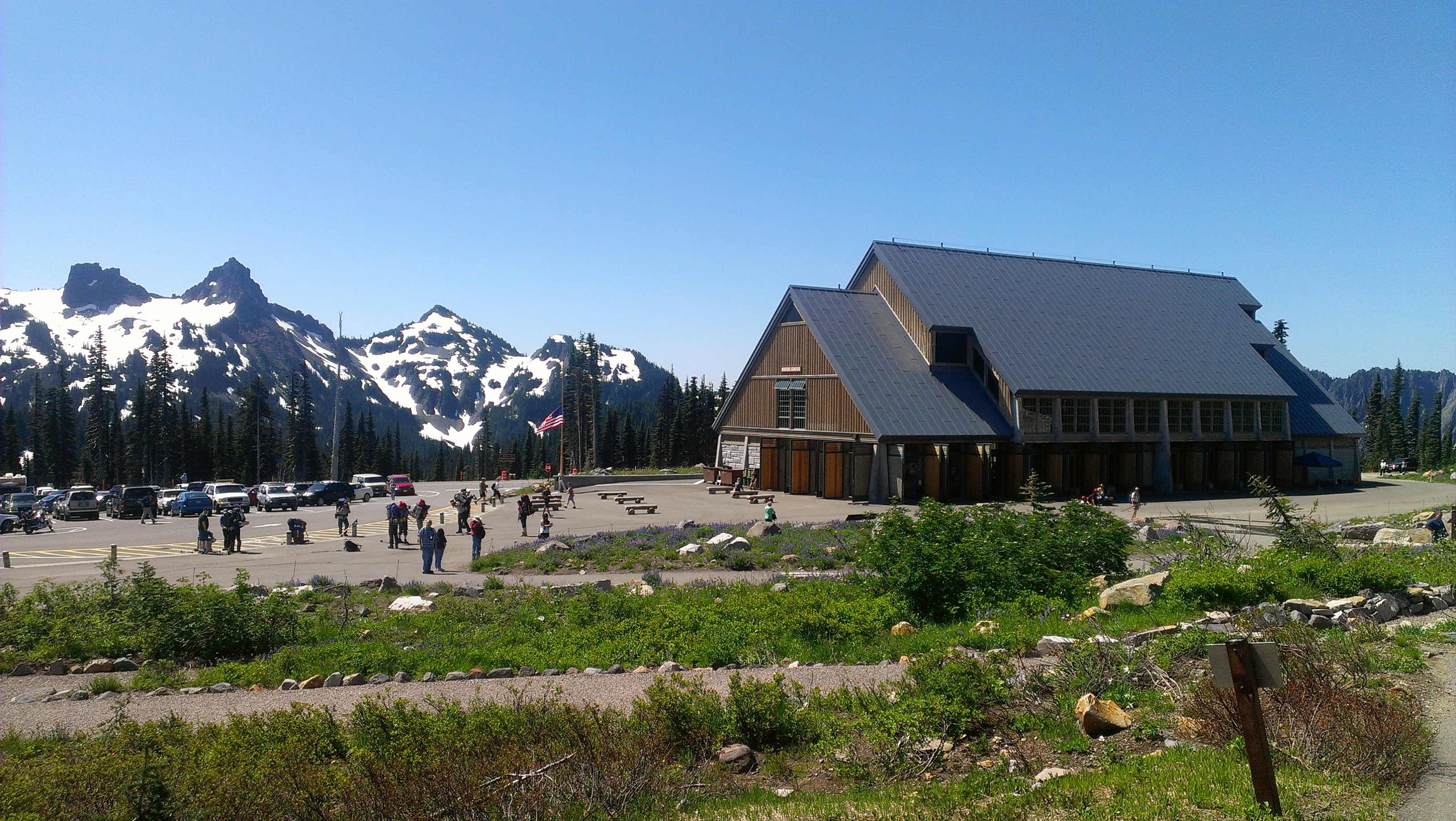 We got an early start to our day and picked up breakfast to eat in the car on the way to Mount Rainier. On a clear day you can actually see the mountain from Seattle. And this was a perfectly clear day! We caught many glimpses of it during our drive. It took us about two hours to drive from our accommodations in the Green Lake area of Seattle to the Nisqually entrance of Mount Rainier National Park.