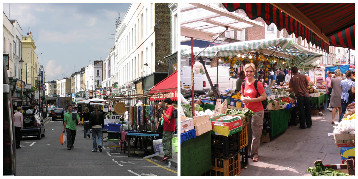 After hanging around Kensington Gardens for a while and enjoying our first (of many!) ice cream treats of our ten week adventure, we decided to head toward Notting Hill and the street market on Portobello Road. Unfortunately the map of London we were using didn’t include the Notting Hill area. So, of course, it took us three times as long as it should have to find this place.