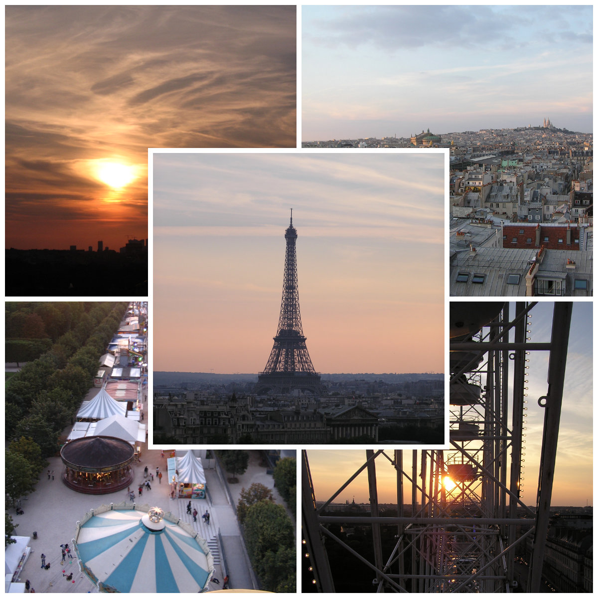 Finished with dinner, we took the metro back to the Tuileries Gardens and walked to the carnival area which the Gardens host every summer. My sister-in-law had visited Paris a few years earlier and told me that one of her favorite memories was riding the ferris wheel as the sun set over the city.