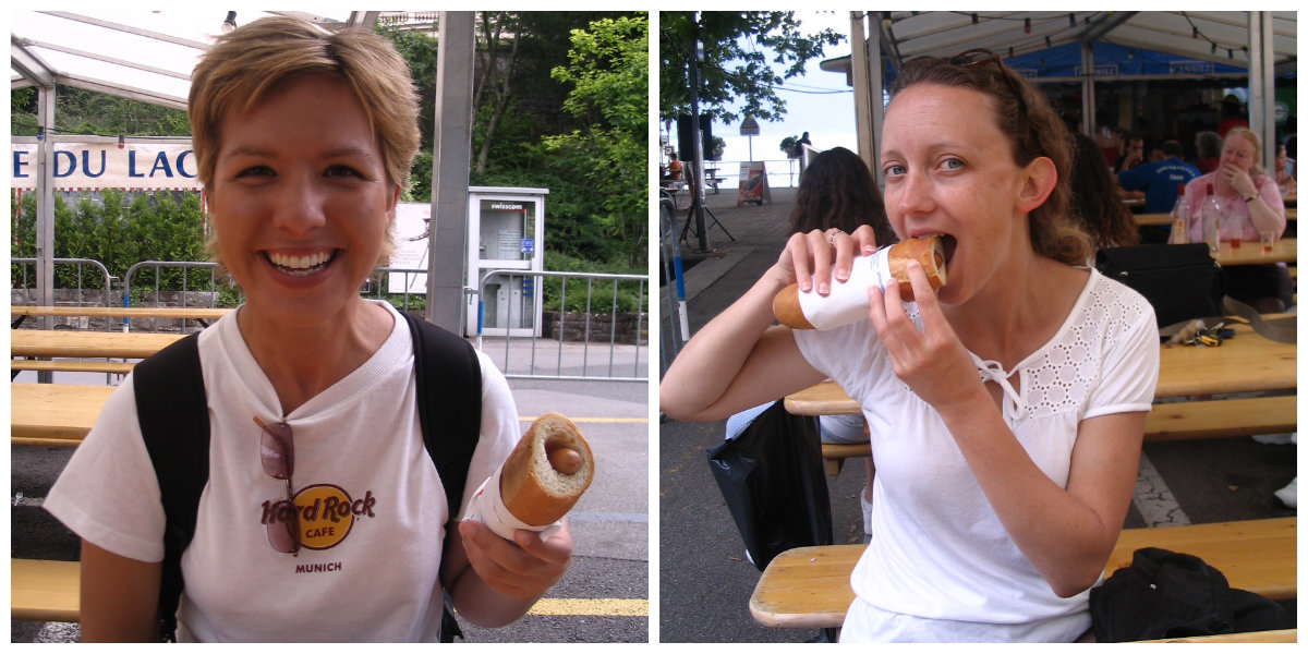 After finishing our hot dogs and french fries (have I mentioned before that this trip occurred years before my healthy eating habits?), we raced to the train station as dark clouds were starting to roll in. By the time we made it back to Lausanne, the rain was coming down so we headed back to our hostel for the evening.