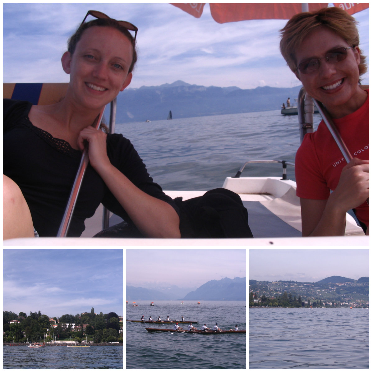 As we sat on a bench eating our food and watching the crew races on the lake, we decided we could give them a run for their money. So we hopped on a paddleboat (free this day because of the festival) and took off! And by “took off” I really mean paddling at about a snail’s pace. But it was still fun! And you couldn’t ask for a more beautiful setting: huge lake with the alps on one side, a lush, beautiful city on the other, and a perfectly blue sky above.