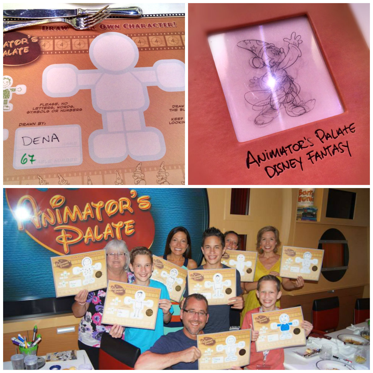 For dinner this evening, we were back at Animators Palate and an experience we had all been looking forward to! At each of our seats there was a marker and a large sheet of paper. We were instructed to draw a character within a specific, outlined space on the paper. For someone who has less than zero artistic abilities, this was quite a challenge.