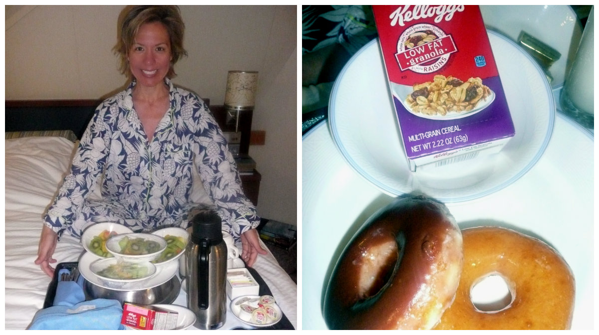 This was the third full day of our 7-day Disney cruise and we were up early and looking forward to a day spent in the great, tropical outdoors. As we had booked an excursion and had to be at our designated onboard meeting location by 8am, we had ordered room service for breakfast the evening before. Not a whole lot of breakfast options on the menu but we made do with the fruit, english muffins, granola with almond milk, and donuts that were delivered to our room promptly at 7:30.