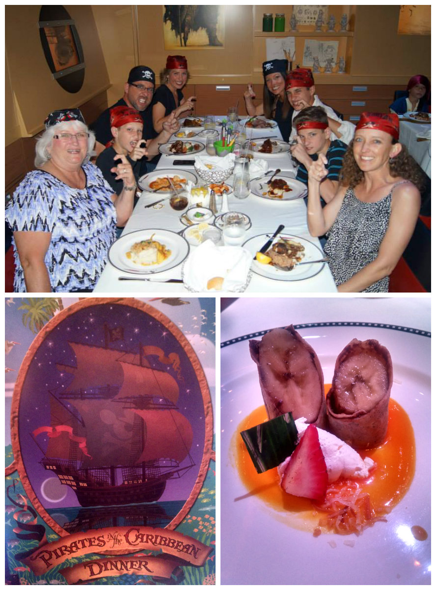 The rest of the afternoon was spent in a lounge chair in the shade reading, journaling and napping. đ That evening we again ate at Animators Palate where everyone was decked out in their pirate finest as tonight was the Pirates in the Caribbean celebration.